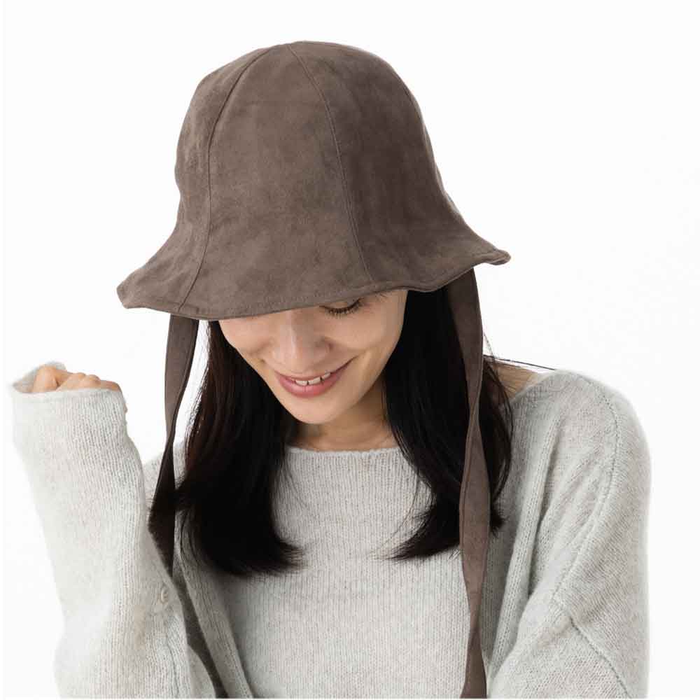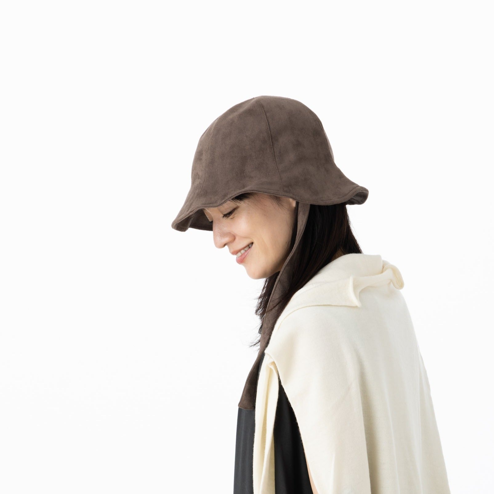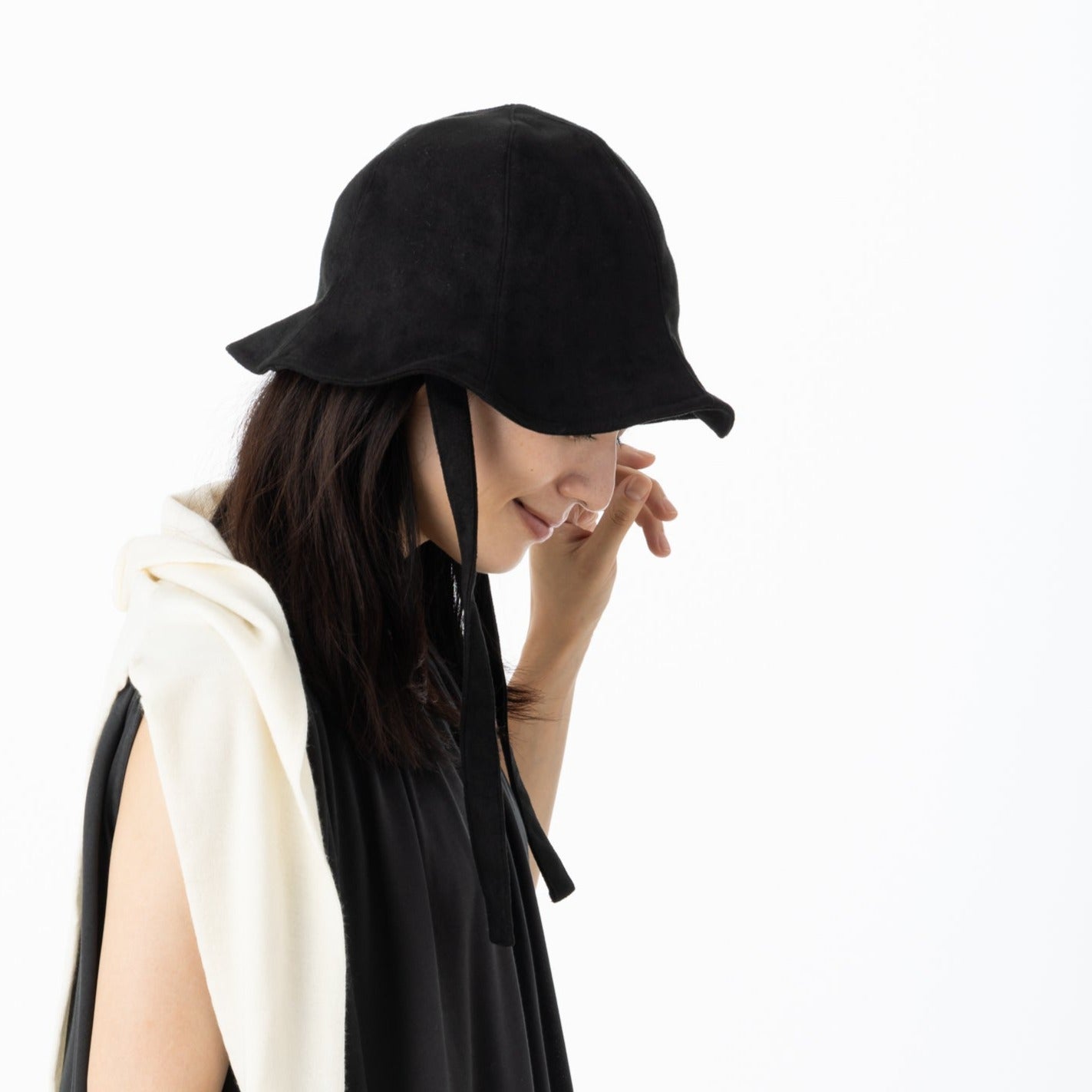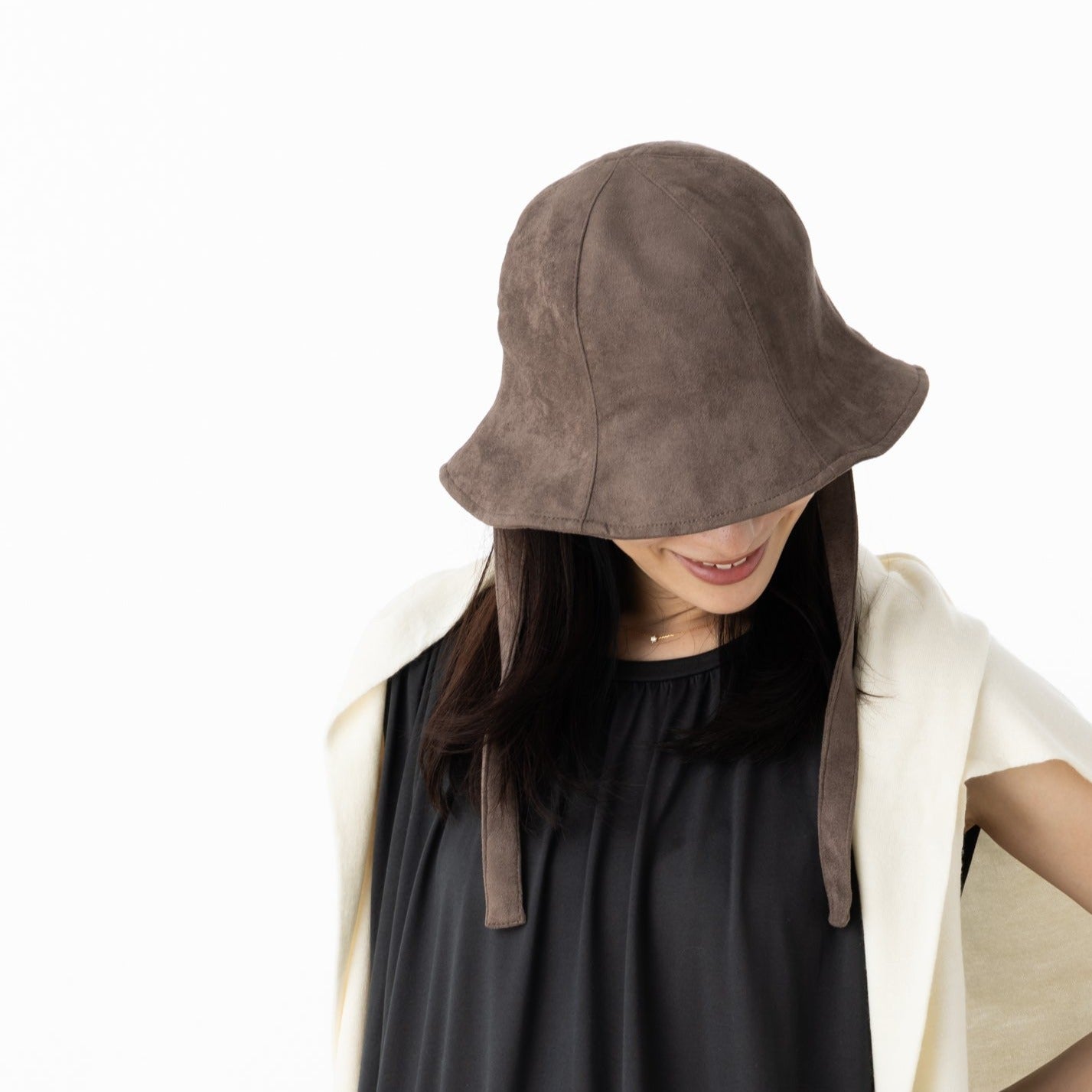 今季流行り中のチューリップハット、スウェード生地で秋冬仕様に仕立てたおしゃれなアイテムです。