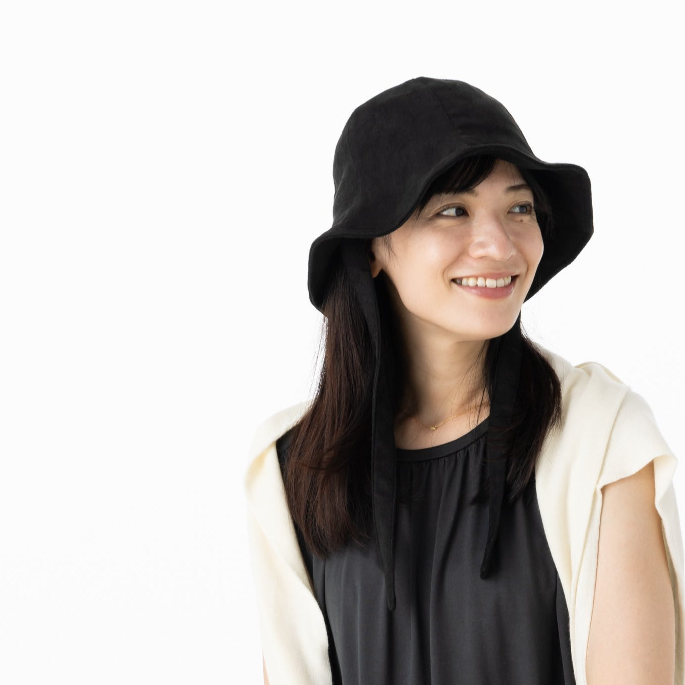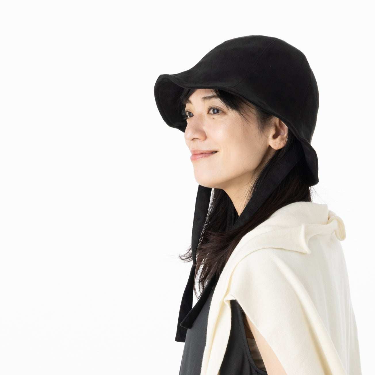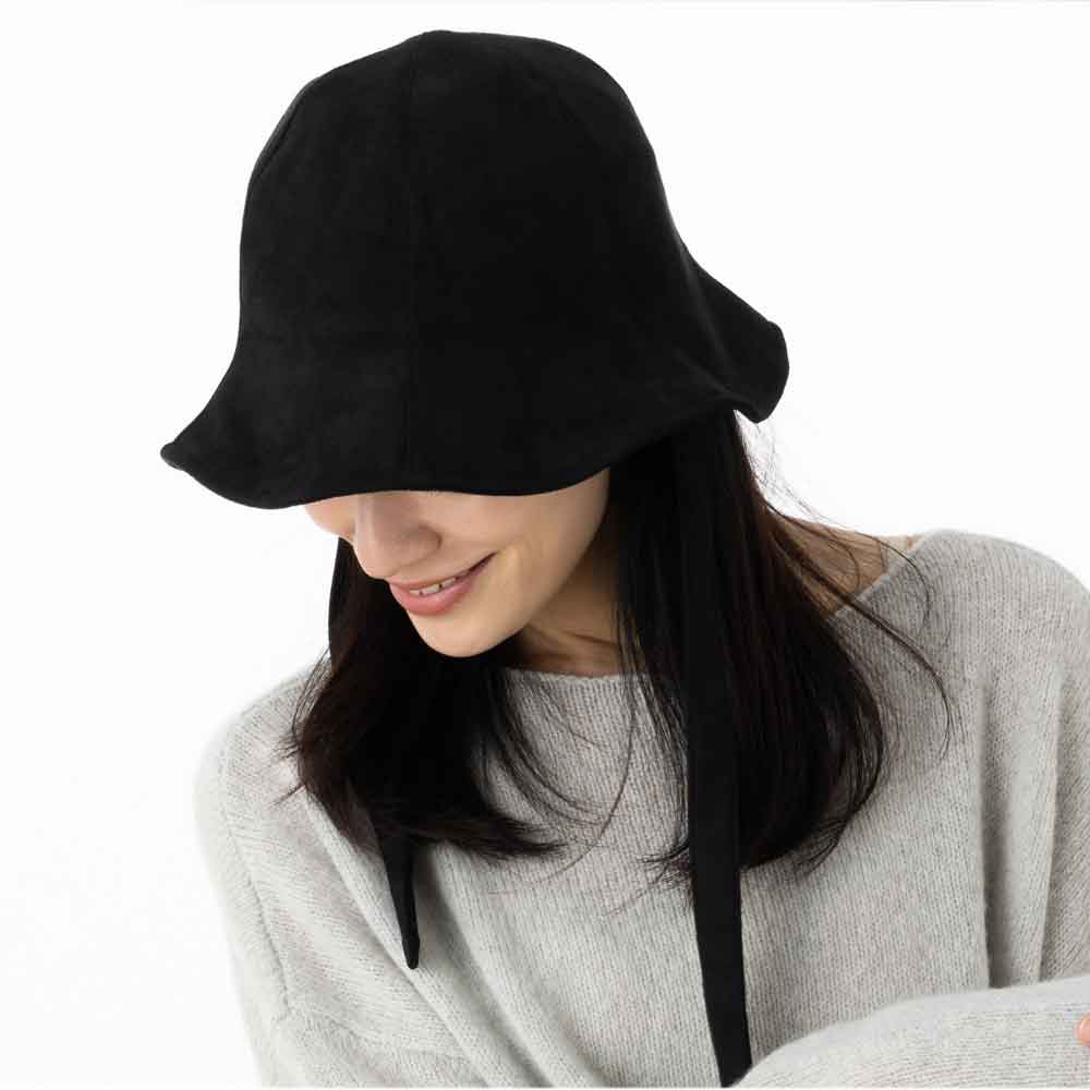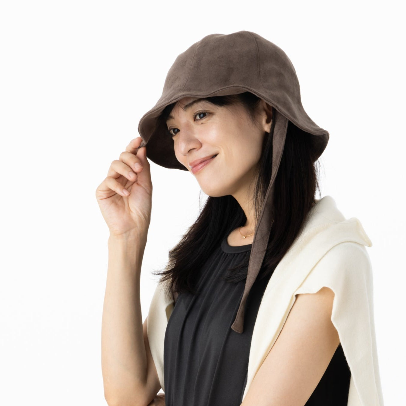 今季流行り中のチューリップハット、スウェード生地で秋冬仕様に仕立てたおしゃれなアイテムです。